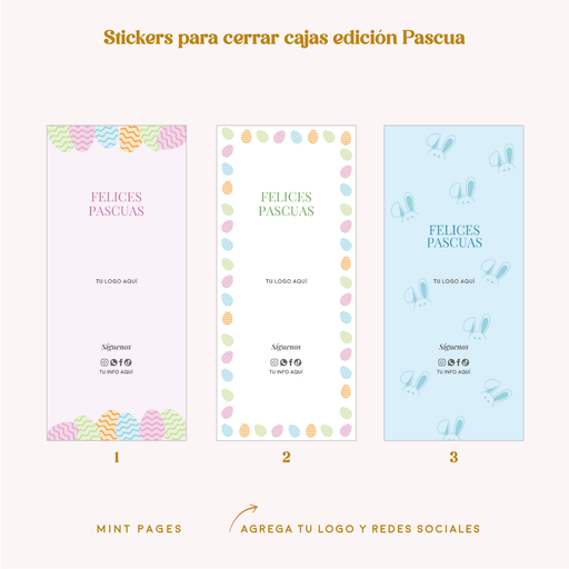 Ver todos los detallesPaquete de stickers para cerrar tus cajitas de Pascua, agrega tu logo! STICKER CAJA CHICA:25 piezas $19950 piezas $348100 piezas $596STICKER CAJA G...